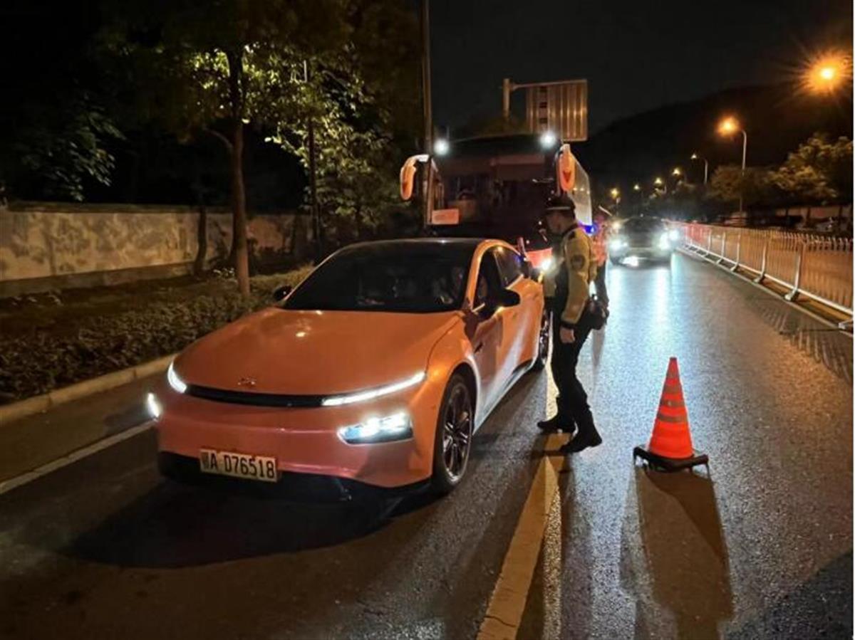 “大家喝酒不要开车,开车不要喝酒,同志你好,请你出示一下证件配合做一下酒精测试……”交通大队紧盯东湖景园等餐饮娱乐场所集中的周边道路,科学部署警力,严厉查处酒驾、毒驾、无证驾驶、非法改装车辆飙车“炸街”扰民等突出交通违法行为。在东湖隧道九女墩出口,武汉市公安局政治部增援的10名警力和交通大队一中队的执勤民辅警一道,对路过的每一辆车进行细致盘查,大家协同配合,现场执勤秩序井然。