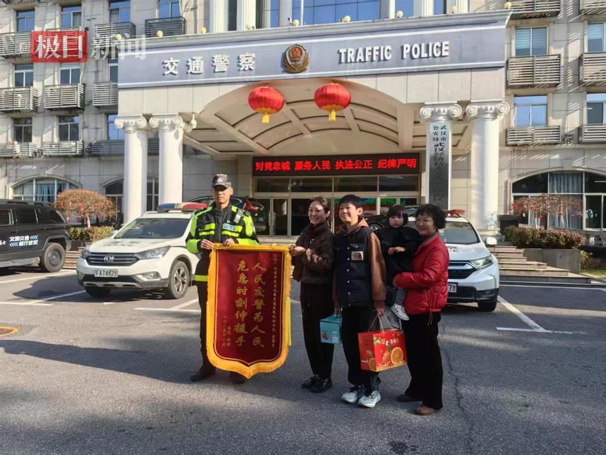 28日下午4时许,正值除夕当天,张女士带着4岁的孩子来到武汉经开区交通大队,给“汉警快骑”机动队唐树保送上一面“人民交警为人民,危难时刻伸援手”的锦旗,感谢他及时伸出援手,在晚高峰时段开辟一条绿色通道,保障其4岁的孩子能够及时送医救治,脱离危险。
