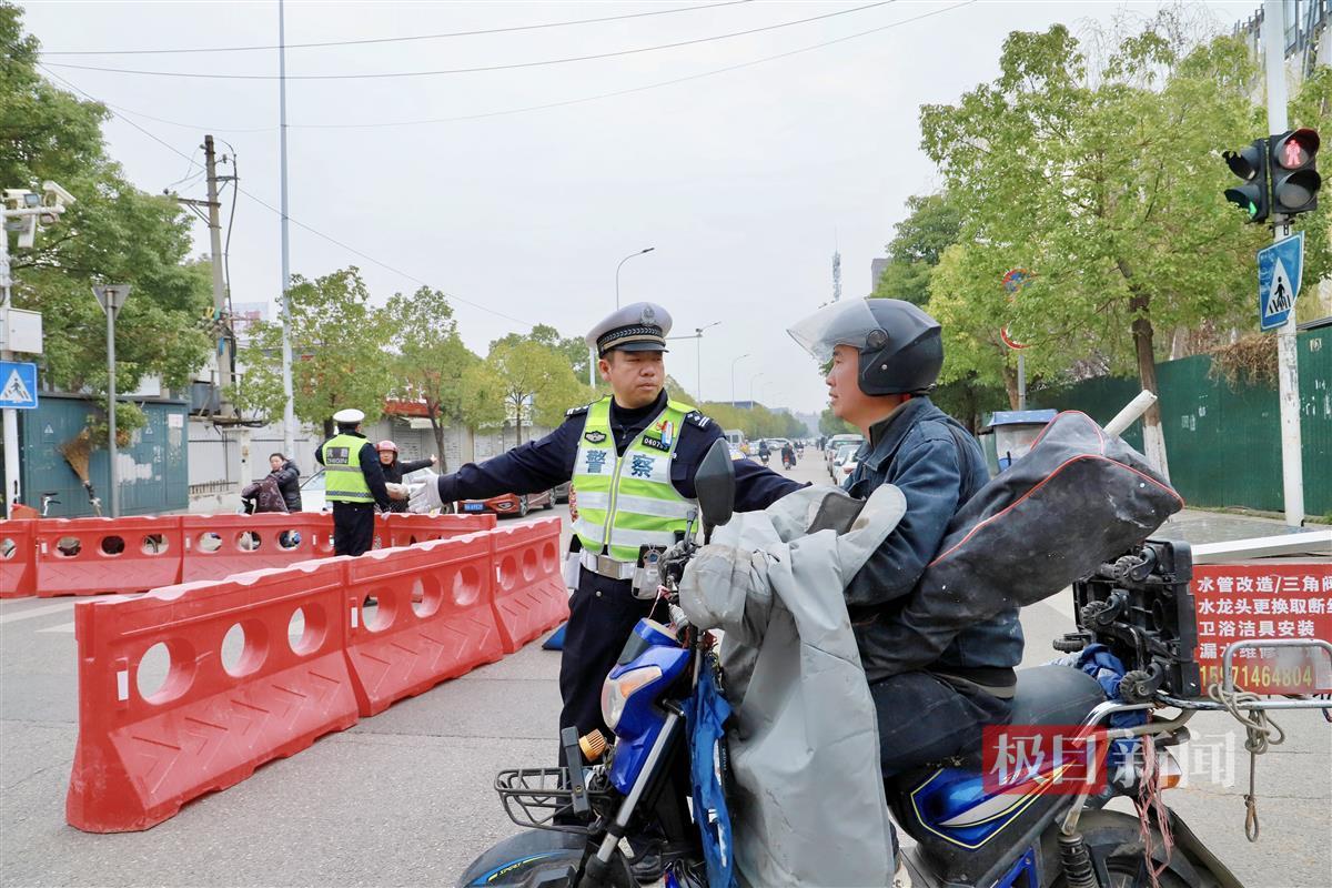 “您好,前方路段即将进行马拉松赛事,请您配合绕行。”交通大队民警周剑锋在航城西路-航城大道与航城东路交会路段执勤时,礼貌地对过往电动车驾驶员进行劝导。