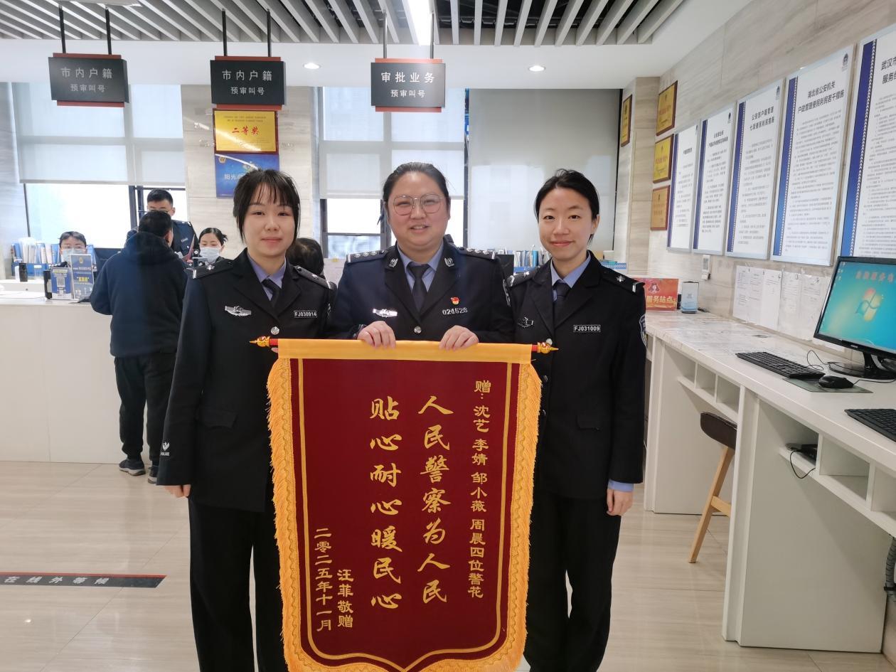近年来,江岸公安政务服务中心窗口聚焦群众“急难愁盼”,持续深化“政务服务+”模式,通过主动延时服务、上门服务、容缺受理等便民举措,提升政务服务的温度与效率。仅11月当月,中心已收到群众感谢信26封、锦旗2面,切实增强了群众的获得感与满意度。