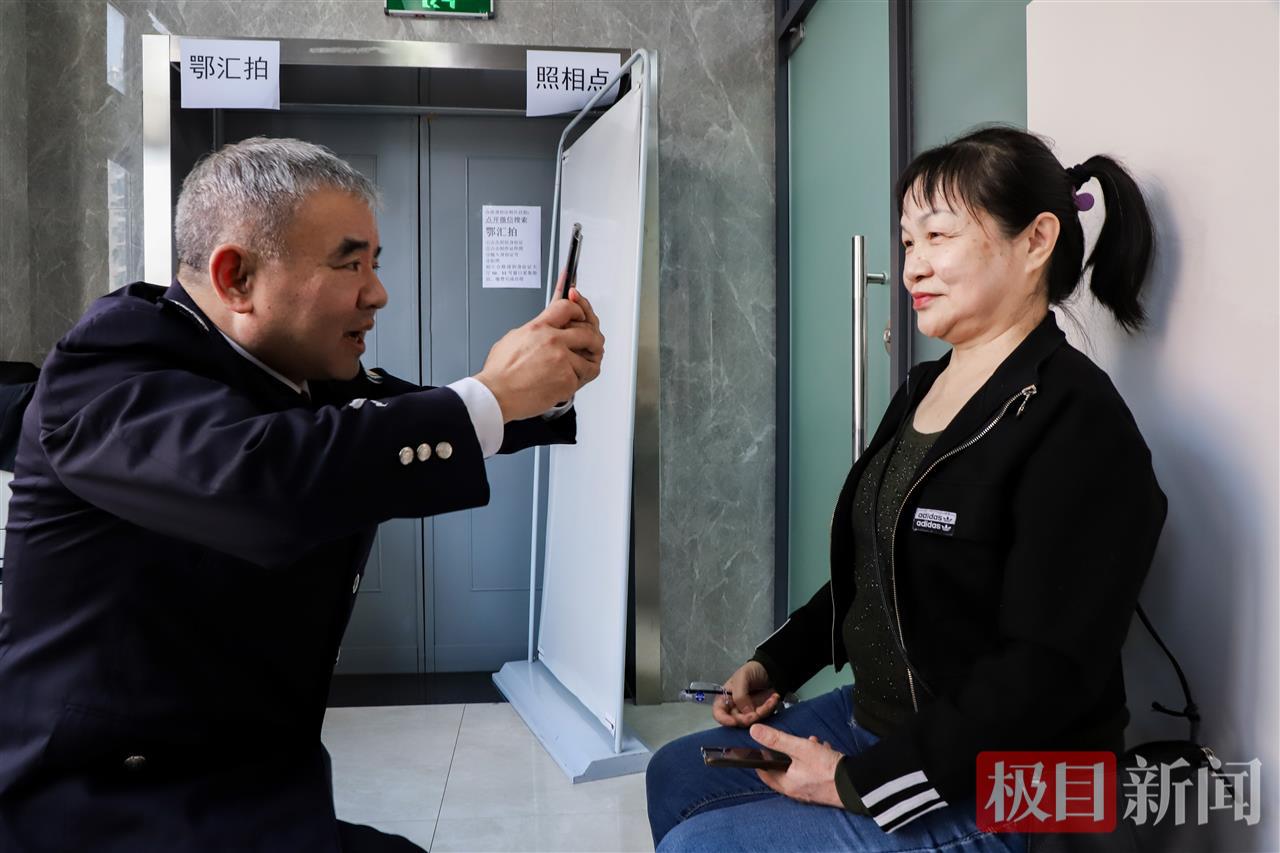 “慢慢来,爹爹看这里,对,就这样保持住姿势……”近日,在武汉市普仁医院的病房内,“英模背包服务队”民警来到医院为王爹爹、吴婆婆(化姓)办理身份证。两位老人因病住院,由于住院前不慎遗失了身份证,导致无法办理相关手续。在医院忙完后,“英模背包服务队”又马不停蹄地赶往118街颐心养老院,为行动不便的老人办理新身份证。