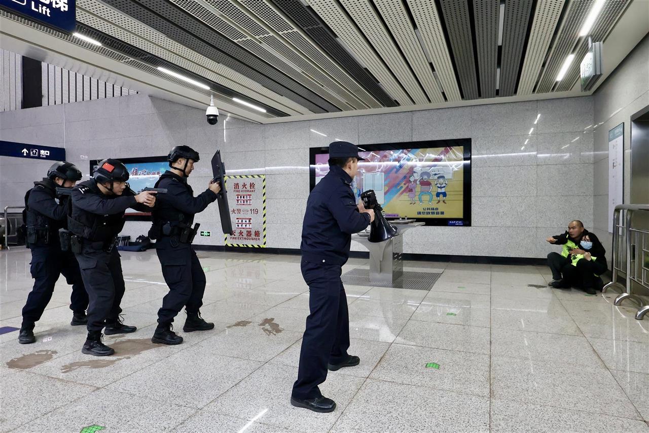 为进一步提升轨道辖区突发事件应急处置和地上地下联勤联动能力,12月18日晚,武汉市公安局轨道交通管理分局、特警支队联合地铁运营公司在地铁8号线车厢内和徐家棚站开展过江隧道应急处突实战演练。分局各职能大队、辖区派出所、特警支队民警辅警以及地铁运营公司员工等30余人参加。