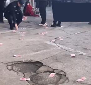 情侣酒后争吵女子街头撒钱,民警现场拾回