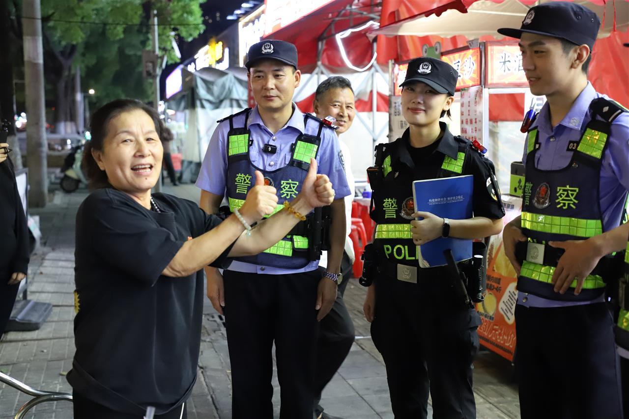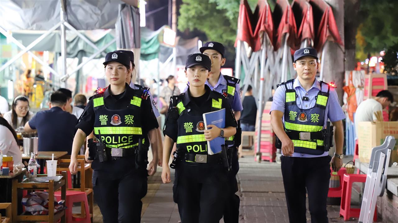 作为武汉著名的“网红美食街”,恩施街曾饱受噪音扰民、交通拥堵等治理难题困扰。2023年11月,青山公安抽调精干警力组建恩施街步巡队,每晚沿1700米长的街区开展近5小时不间断徒步巡逻,全面提升商户和群众的安全感。