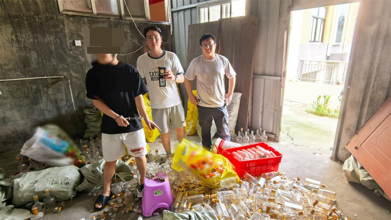 2025年4月中旬,青山公安接到企业举报,称采购到疑似假冒品牌的白酒。经鉴定确为假酒后,分局立即抽调网安大队、环食药侦大队、辖区派出所警力成立专班展开调查。