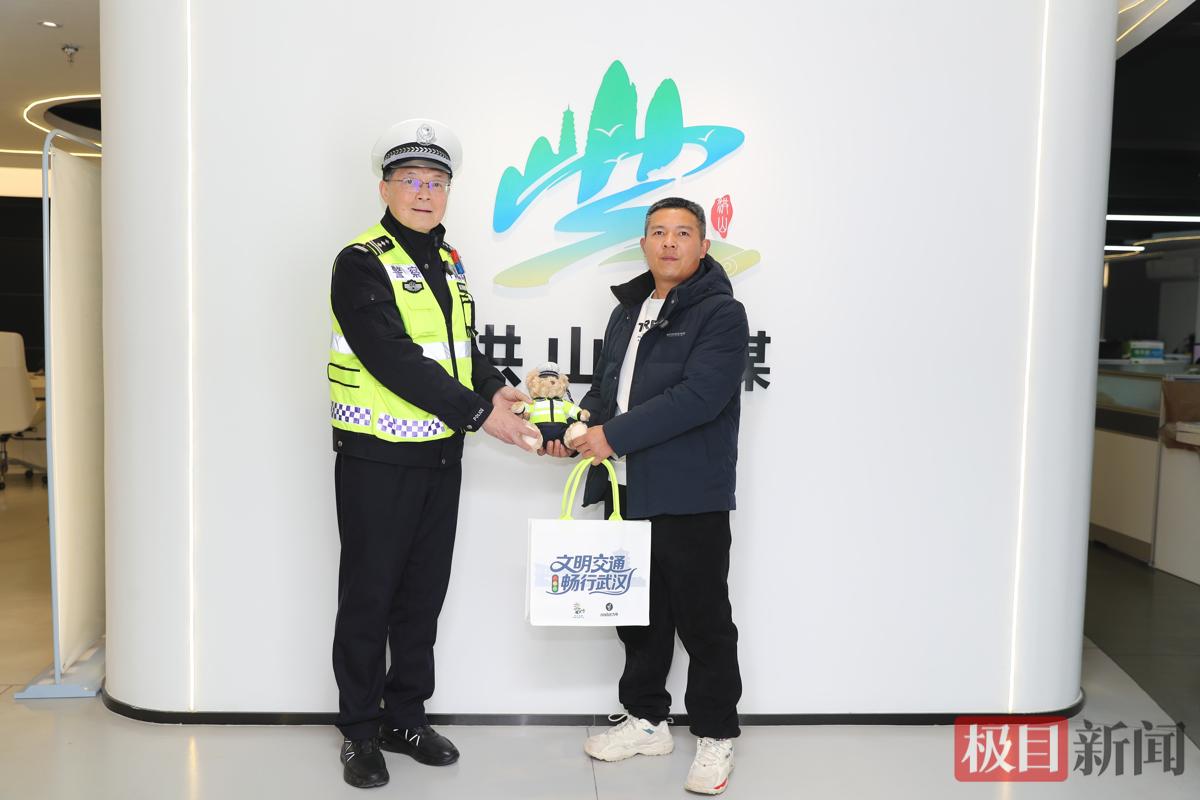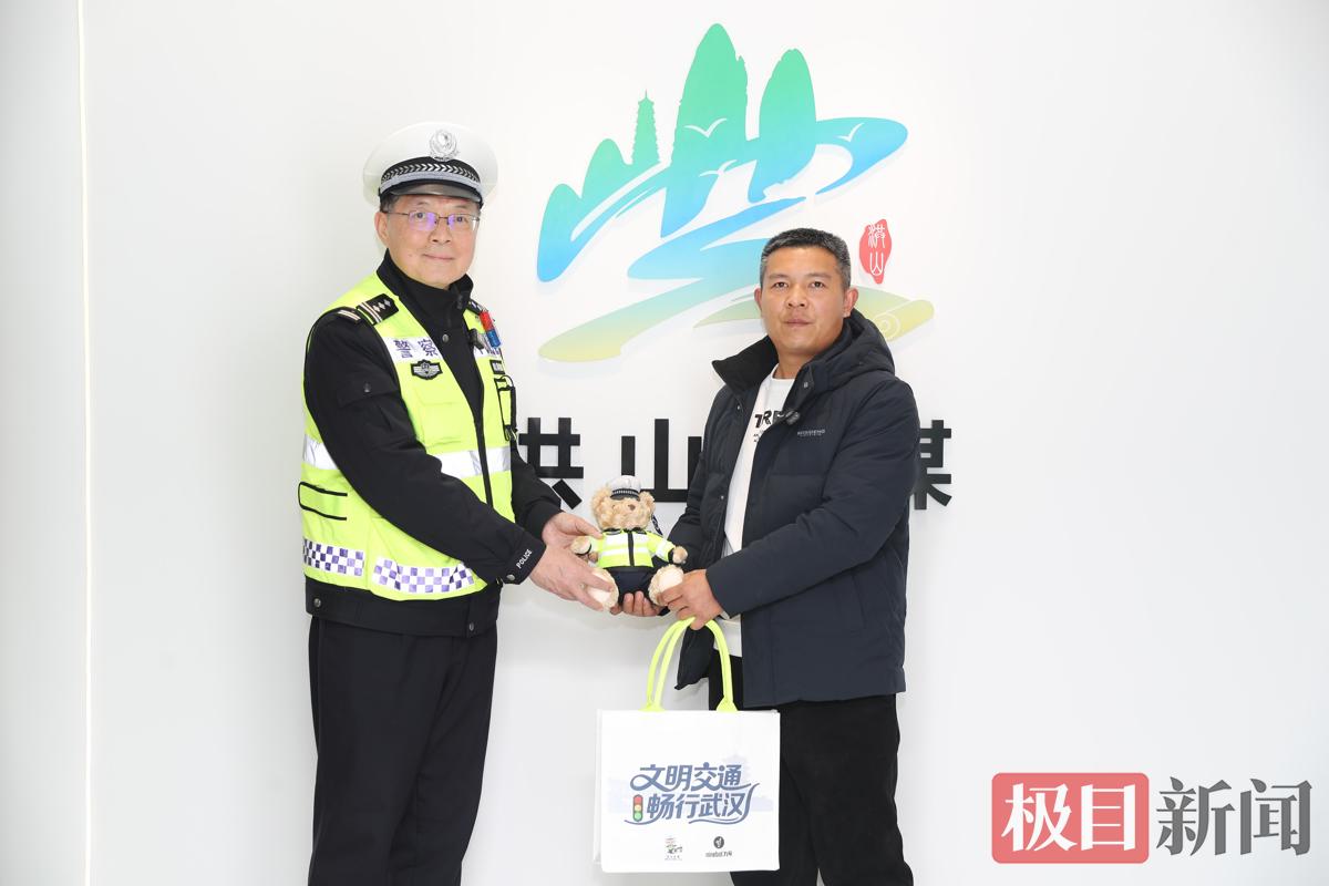 1月22日下午,詹时美应邀走进武汉市洪山区融媒体中心,面对面还原了那个风雪中的温暖场景。洪山交警也专程前来,为他送上象征感谢与认可的“警察小熊”玩偶,并对他在极端天气中自发参与交通疏导、帮助受困车主的善举表示充分肯定。