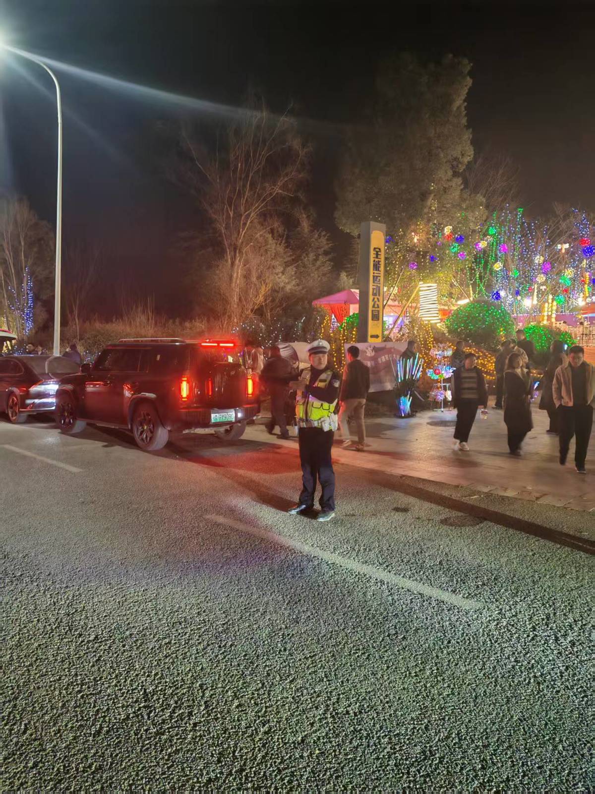 当晚17时许,李冲就和同事们一起提前到达灯会现场。绚烂的花灯下,人群熙熙攘攘,李冲身穿警服,在车流中穿梭执勤。疏导车辆、提醒群众注意脚下安全、耐心指路。巡逻过程中,一个小女孩走到李冲面前,抬头看着他。李冲以为她要问路,蹲下来准备倾听。小女孩用稚嫩的声音说道:"警察叔叔,您辛苦啦,过年还在上班,我能跟您合张影吗?"
