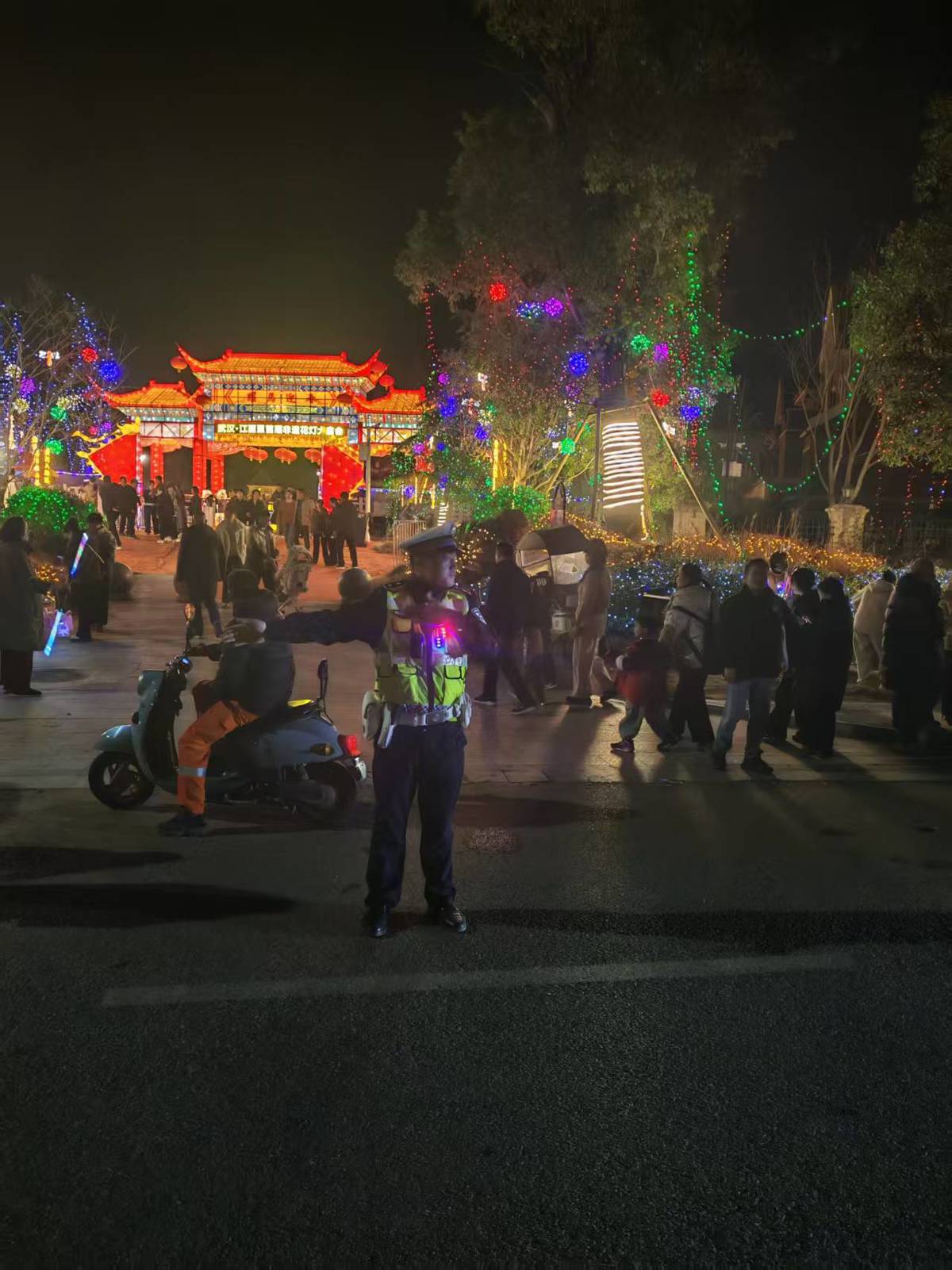 2月17日,大年初一夜,江夏里花灯会灯火璀璨,游人如织。对很多人来说,这是欢聚的时刻;对刚加入江夏分局交通管理大队不到一年的新警李冲来说,这是他警察生涯里的第一个春节安保岗,也是第一年没有和家人团聚在一起过年。