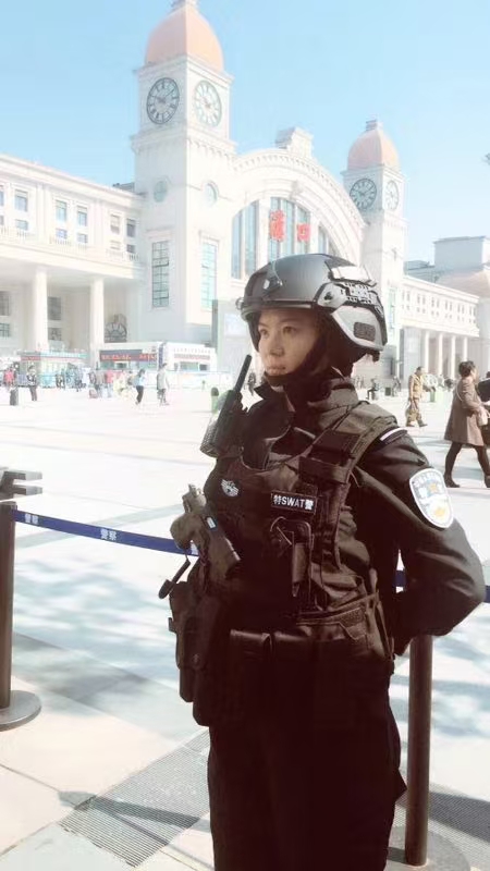 2018年,黄玉进入武汉特警驻江汉大队,驻守汉口火车站广场。夏季地面温度高达48℃的酷暑天里,她和男同事们一同24小时三班倒巡控,持枪站岗的身影坚毅挺拔。有意思的是,汉口站广场上铁路职工、巡逻特警都不少,遇到困难的旅客,却总爱第一时间走向岗亭里的黄玉。“可能是我穿的特警制服让群众信任,我是女同志看起来亲和一些,旅客有事都喜欢问我。”