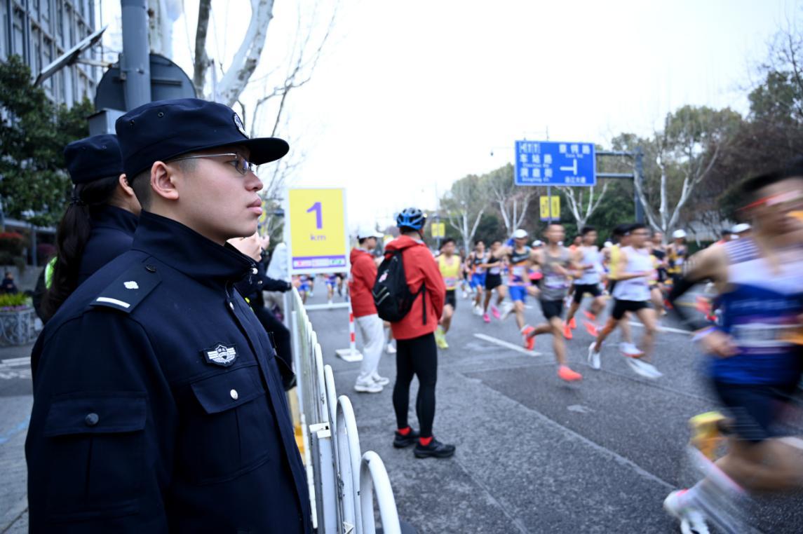 随着发令枪响,选手们如潮水般涌出起点,沿江大道至中山大道的漫长赛道成为检验安保工作的又一主战场。从三阳路到天津路,再到江汉路,由民警组成的庞大安保梯队,在长达数公里的赛道边筑起了一道道“防护壁”。