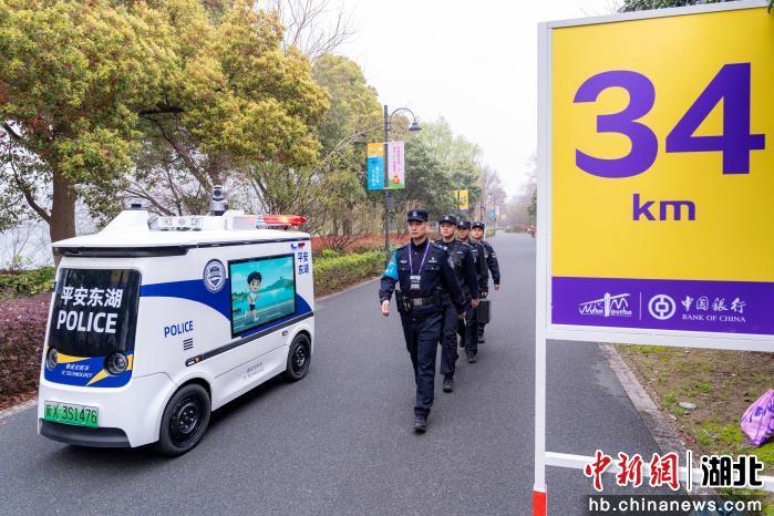 清晨6时,东湖绿道34公里处,无人警车与巡特警队员联合开展巡逻,滚动播报道路临时管控信息。码头边,东湖生态旅游风景区分局水上巡逻力量已整装待发,三路巡逻艇沿东湖南路、磨山梅园码头、东湖楚风园水域穿梭巡弋,随时待命开展救助与应急保障,为赛道内外撑起一片安心水域。