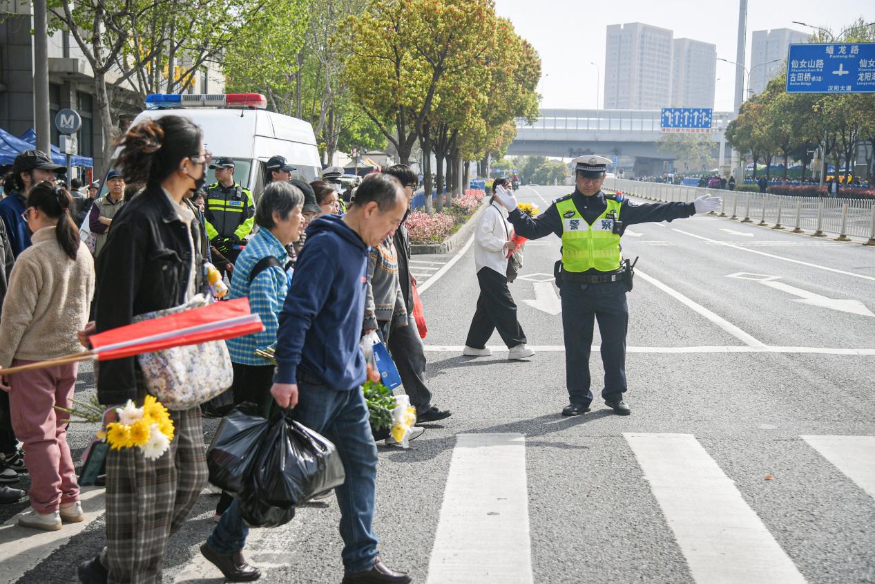 4月4日,清明小长假首日天气晴好,市民群众集中出行踏青祭扫,武汉市迎来人流、车流高峰。武汉市公安局科学部署警力,全力以赴守护平安。截至当日17时,全市社会面治安平稳有序,道路交通通行顺畅。