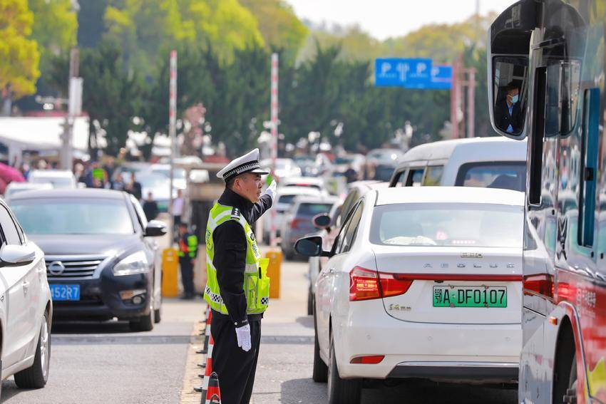 上午9点到11点是车流高峰时段,104省道车流量较平日增长近3倍,但整体运行平稳。“车虽然多,但基本平稳有序;人虽然多,但秩序井然。”指挥中心民警肖腾说。