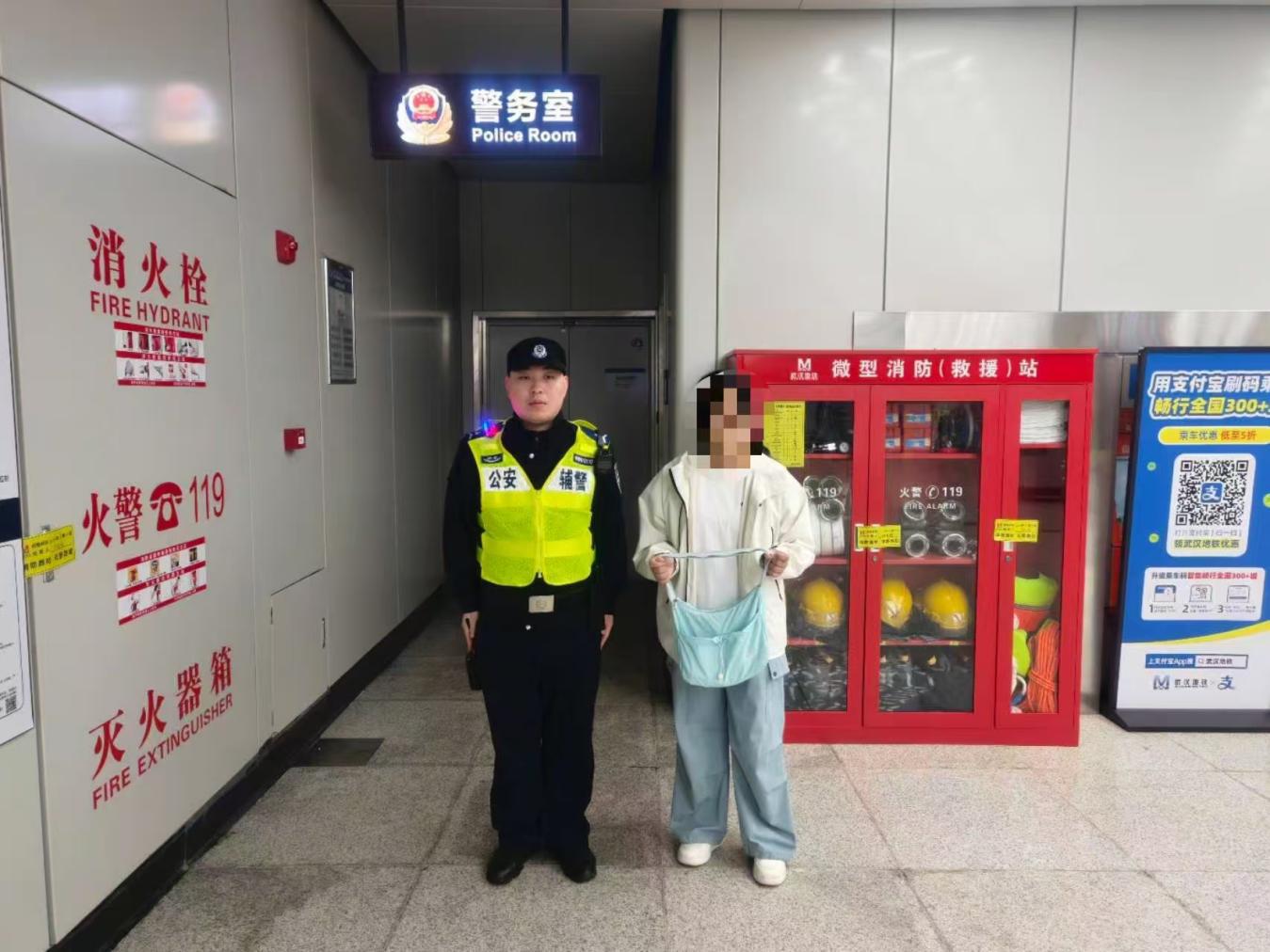 4月9日8时50分许,民警吴斌、辅警张吉祥在地铁7号线百泰路站执勤时接到乘客刘女士求助,称其出站时不慎遗失一只浅蓝色的手提包,包内装有200余元现金和价值1500元的手机。吴斌、张吉祥耐心安抚刘女士的情绪,并调取视频监控多方查找。9时10分许,黄陂广场站车控室传来好消息,手机已被保洁人员捡拾并上交。张吉祥立即陪同刘女士前往黄陂广场站领取失物。手提包失而复得后,刘女士对民警辅警的帮助再三表示感谢。