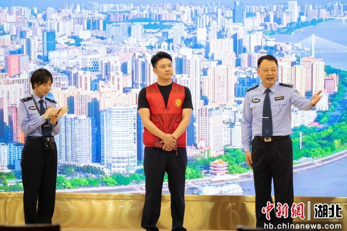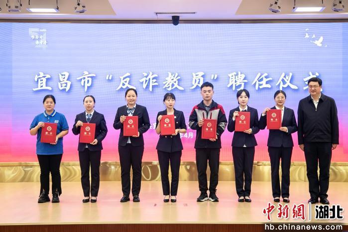 宣讲中,宜昌市委常委、政法委书记刘劲松为7名来自金融、物流等行业的“反诈教员”颁发聘任证书,夯实全民反诈的“群众防线”。