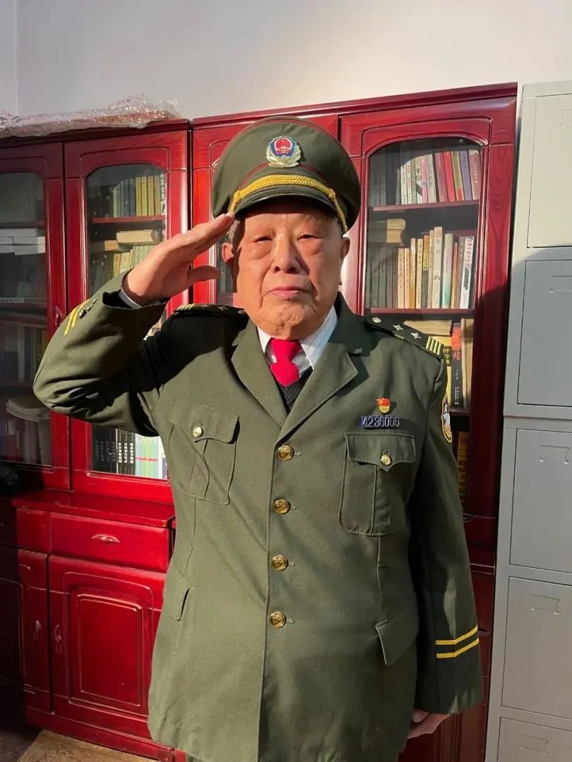 尽管抬起手有点吃力,但穿上心爱的老式警服,今年88岁的陶子厚腰杆挺得笔直,眼里透着刚毅。
