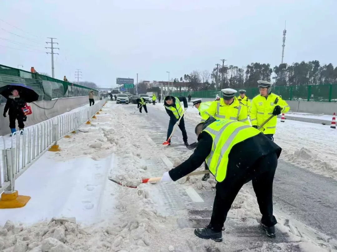 2024年年初,京港澳高速遭遇极端冰冻天气。双方迅速组织高速交警、施工养护人员300余名,成立10余支“映山红”党员突击队及多个攻坚班组,分段包保、昼夜奋战,累计除冰380余公里,保障近4万辆车安全通过施工区。