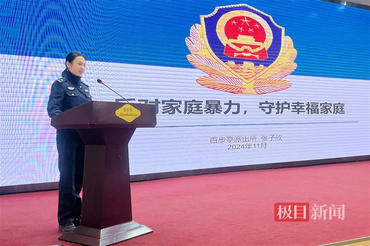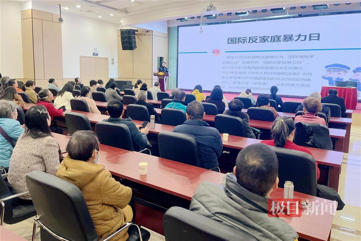 “Ta打我,我该怎么办?”“民警接到家暴警情如何处置?”“协助反家暴的社会服务机构都有哪些?”11月22日上午,在“11.25国际反家庭暴力日”来临之际,武汉市公安局江岸区分局百步亭派出所民警张子欣走进百步亭社区法治大讲堂,与现场80余名居民面对面开展“反对家庭暴力,守护幸福家庭”普法宣讲。