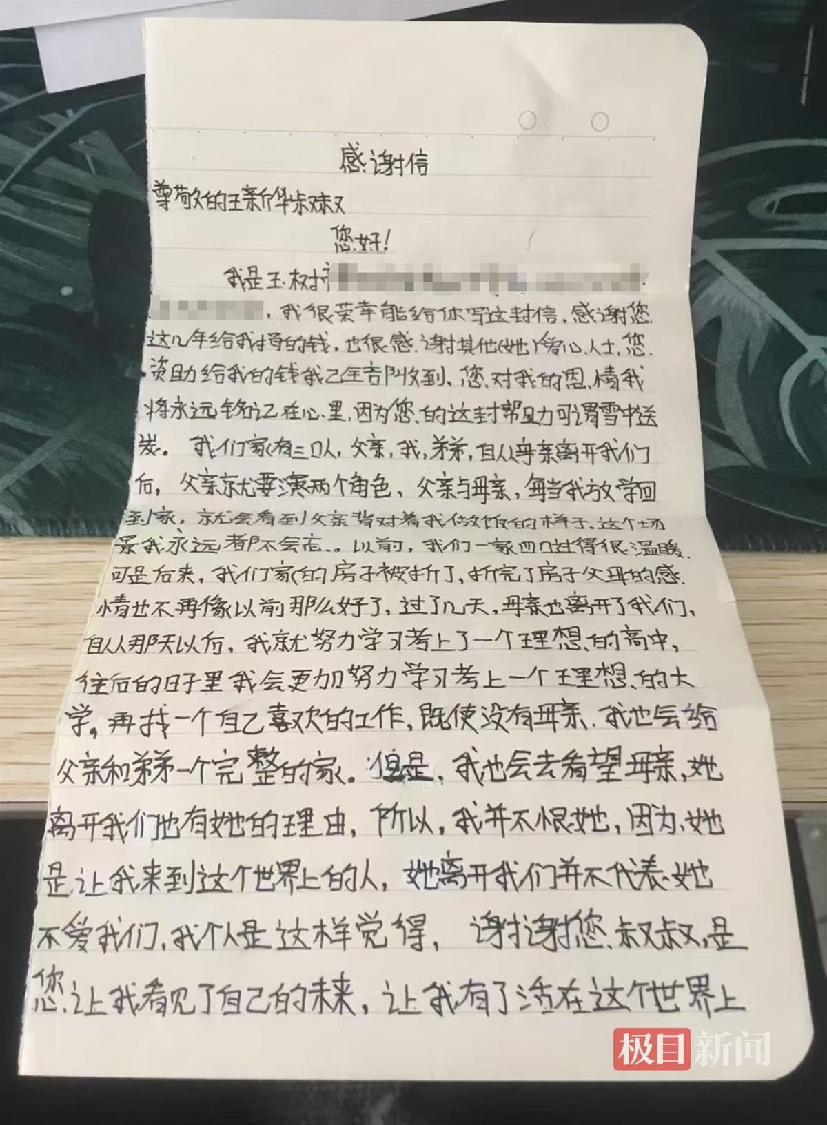 为了感谢王新华,文化水平不高的许婆婆拜托老伴为王新华写了一封感谢信,她用满满三页纸详细讲述了王新华对他们一家人的帮助和自己的感谢之情。在信中,她庆幸有生之年遇到了真心实意帮助他们的好心人。