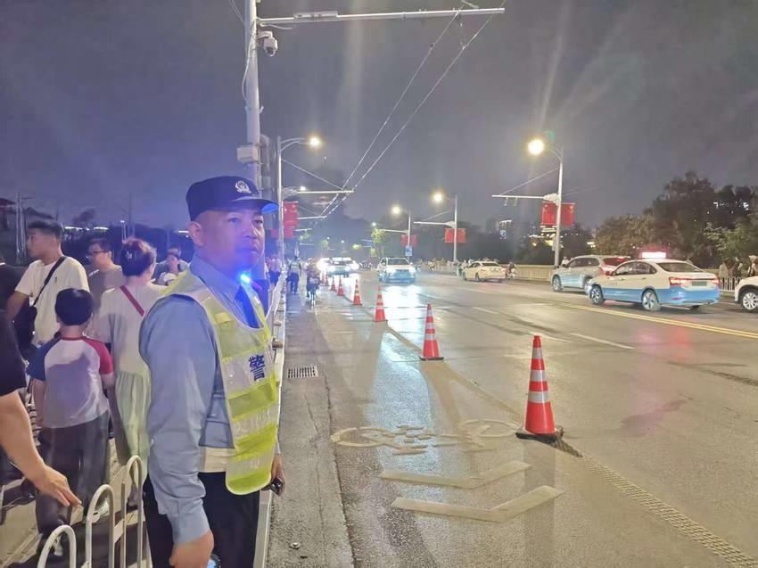 10月6日下午2点,黄鹤楼公园游客量达2万人次,毗邻长江大桥的西门成了客流最集中的地方。“请有序通过,沿着步道下桥再打车。” 分局反恐怖和巡逻大队负责人周武军手持扩音喇叭引导人流,辅警在路边劝阻违停车辆,值守力量按照“一点一方案”,时而分流拥挤的人群,时而解答游客的路线咨询,确保人车通行互不干扰。