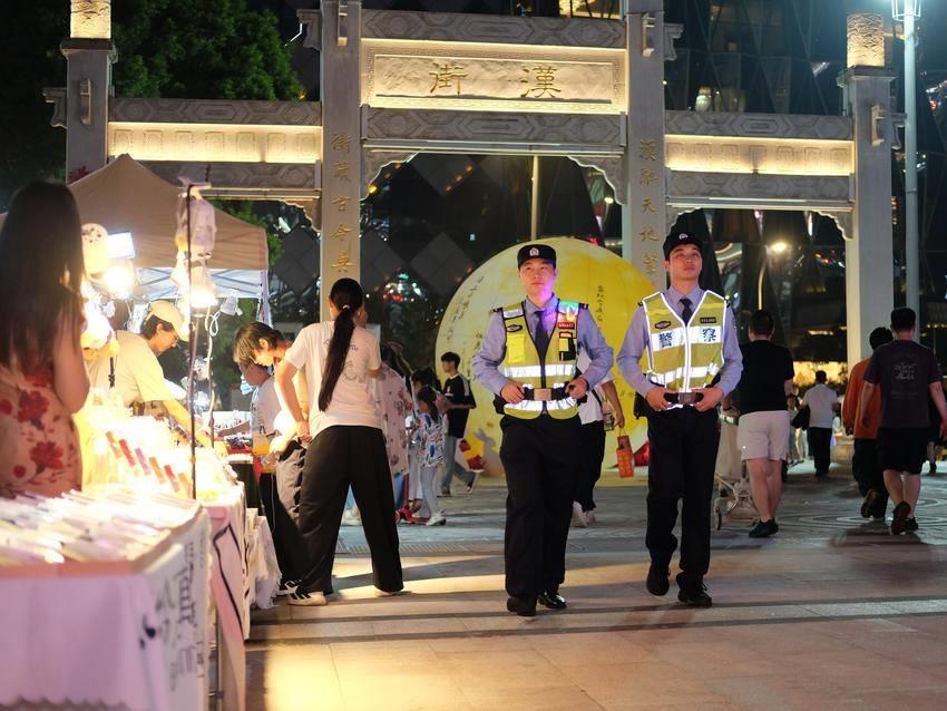中秋清辉满庭圆,坚守换得万家安。中秋节恰逢国庆长假,游客纷纷走上长江大桥、司门口天桥,举起手机打卡“夜上黄鹤楼”,楚河汉街、梦时代等商圈华灯映照,祥和温馨。节日氛围中的武昌区公安民警辅警,以坚实的脚步丈量辖区街巷,携“黄鹤卫士”日夜巡逻,用科技的力量确保大客流下道路通畅,操作无人机助力疏导交通,他们默默地将平安写进城市的每一个角落。