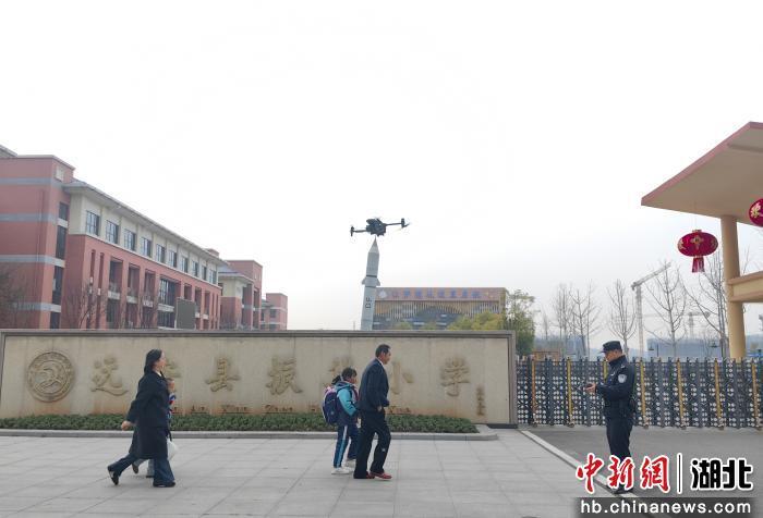 中新网湖北新闻3月4日电(刘艳 吴东炬 刘芃)远安县32所中小学、幼儿园4日迎来春季开学。远安公安首次启用警用无人机助力开学安保警务,打造空中巡航、地面巡逻、多警种联动的“空地一体”护学模式,护航1.6万名学子重返校园。